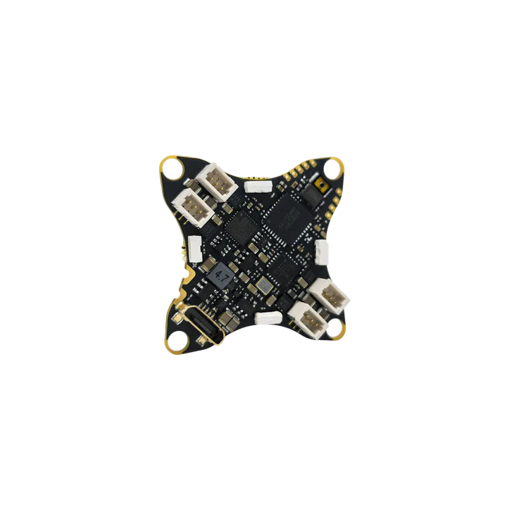 Hummingbird V4 AIO je navržen pro tinywhoop a micro racing/freestyle drony, kde je klíčová minimální hmotnost, kompaktní konstrukce a plug-and-fly integrace. Doslova spojuje veškerou leteckou elektroniku — řídicí modul s procesorem STM32F411, gyroskop BMI270, 12 A ESC pro řízení motorů, SPI přijímač ExpressLRS pro ovládání, grafické OSD pro video overlay a VTX s plynule nastavitelným výkonem až 400 mW pro FPV video přenos. Díky tomu není potřeba žádné externí moduly — stačí motor, rám, kamera a baterie 1S.